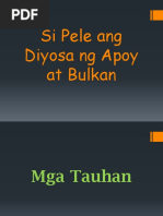 Si Pele Ang Diyosa ng Apoy at Bulkan Tagpuan Pangunahing Tauhan Saan at Kailan Pele-Diyosa ng apoy at bulkan 1. Kahit nakalipat sila sa isang mataas na lugar naabutan pa rin sila ni Namaka at nag laban na sila ni Pele at nanalo si Pele subalit ikinamatay niya ito dahil siya ay nanghina. Sa kasukdulan ng kanilang alitan ay lumikha si Pele ng isang bulkan at pagkatapos itoy pumutok Natalo niya si Namaka ngunit nanghina siya at saka namatay.